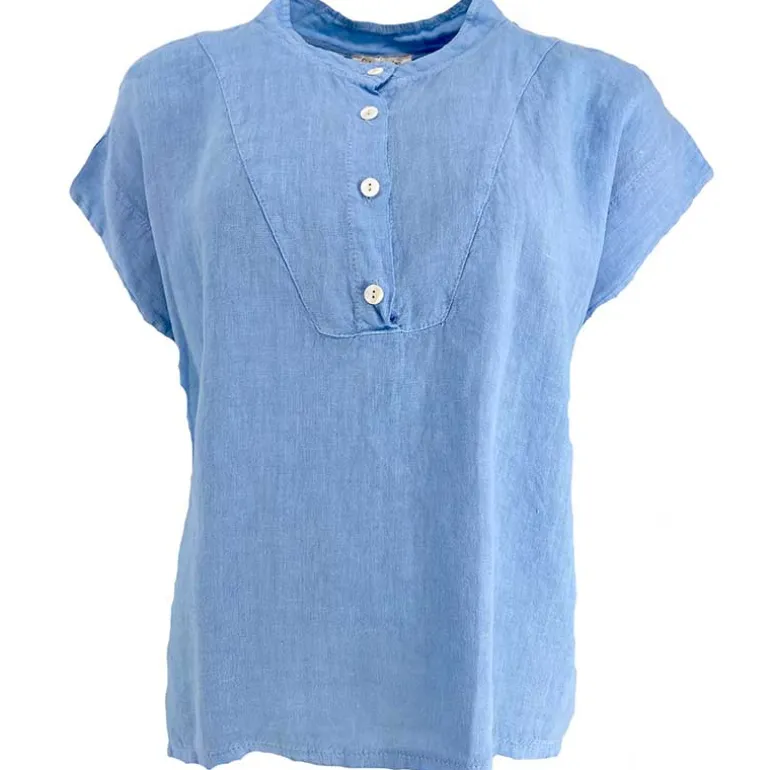 Kortærmet hør bluse i blå fra Cabana Living.