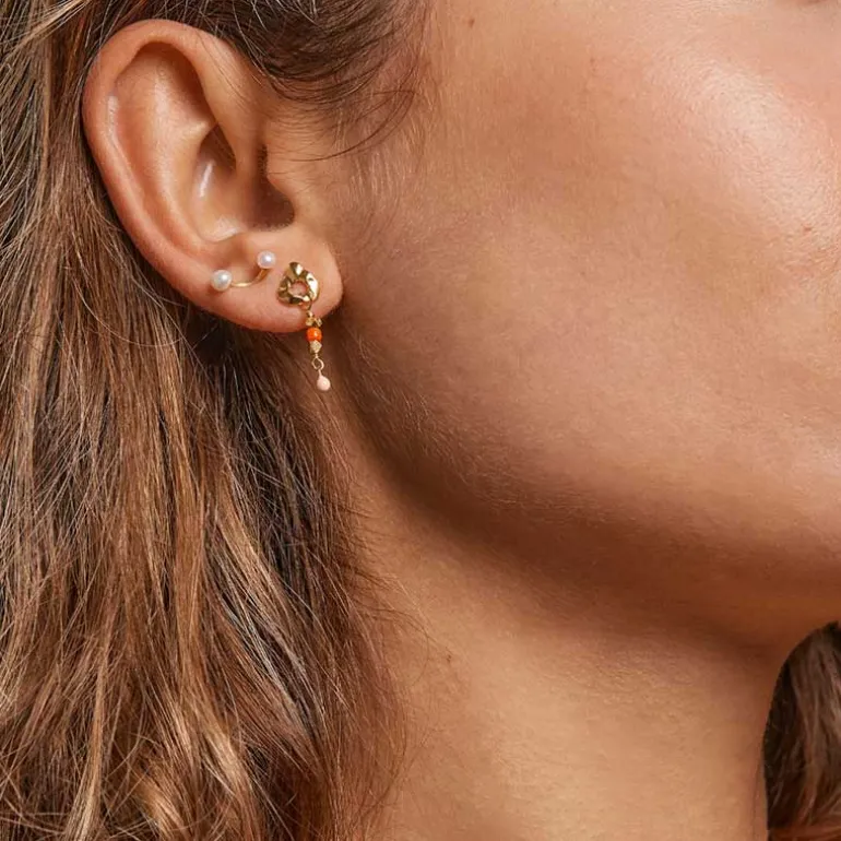 Enamel perle øreringe i guld.