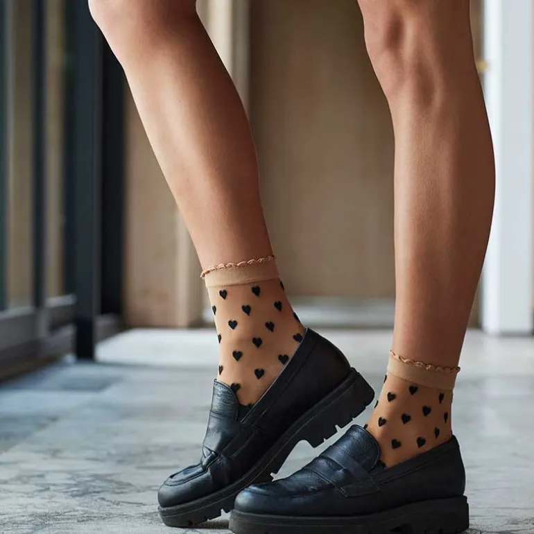 Nude farvede strømper med hjerte fra Hype The Detail.