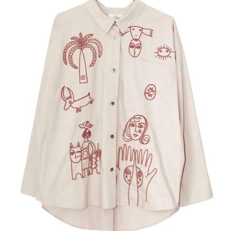 Oversized broderet skjorte fra M. Wiesneck i lys sandfarvet.
