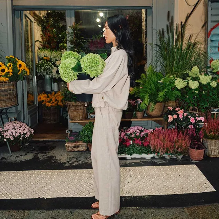 Løse habitbukser fra Mos Mosh i lys sandfarvet.