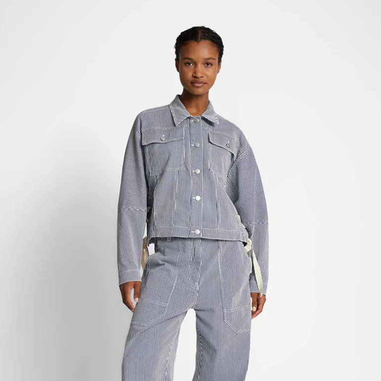 Stribet oversized denim jakke fra Munthe.