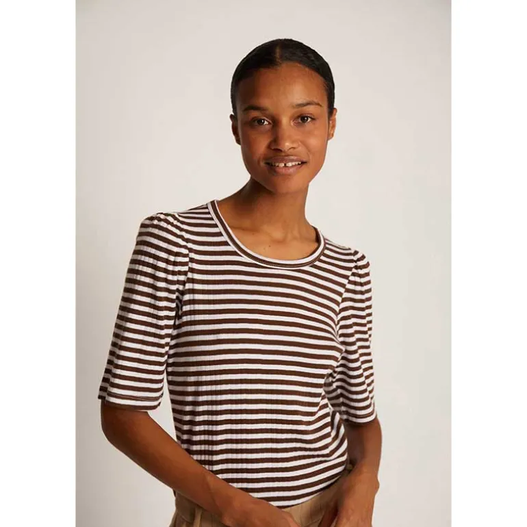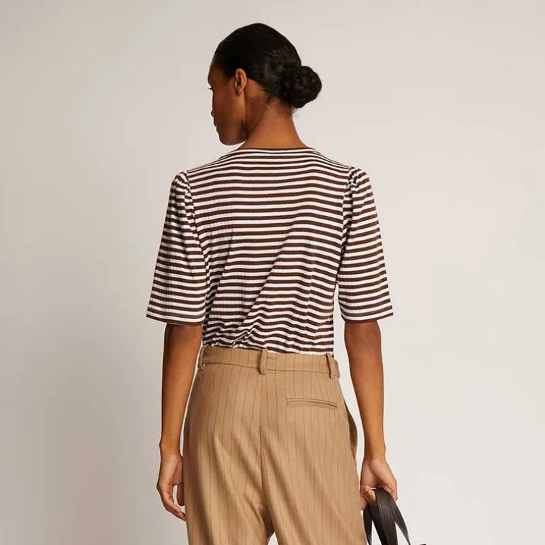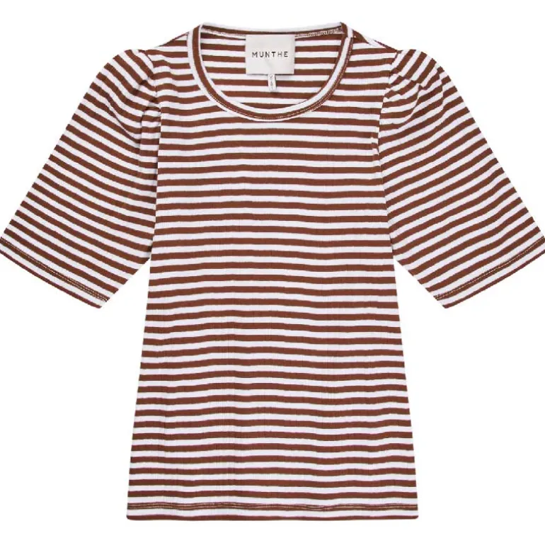 Munthe stribet t-shirt i brun & hvid.