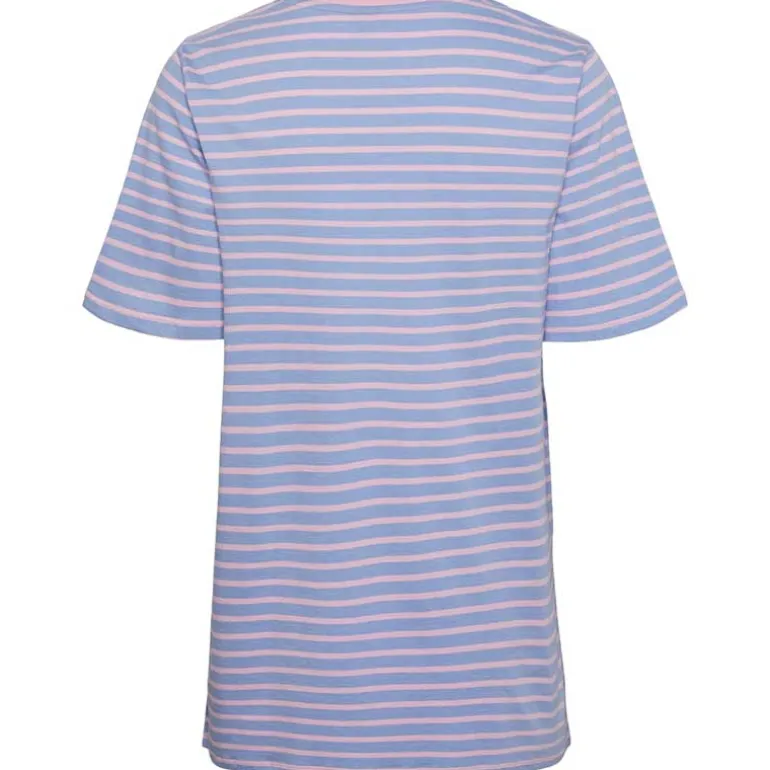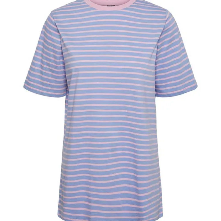 Stribet oversized t-shirt fra Pieces i lyserød.