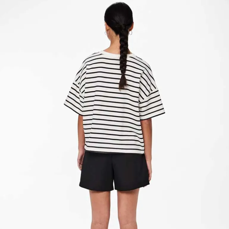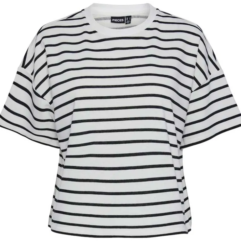 Stribet sweat t-shirt fra Pieces i hvid & sort.