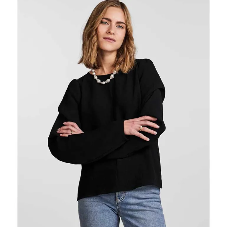 Pieces plisseret bluse i sort.