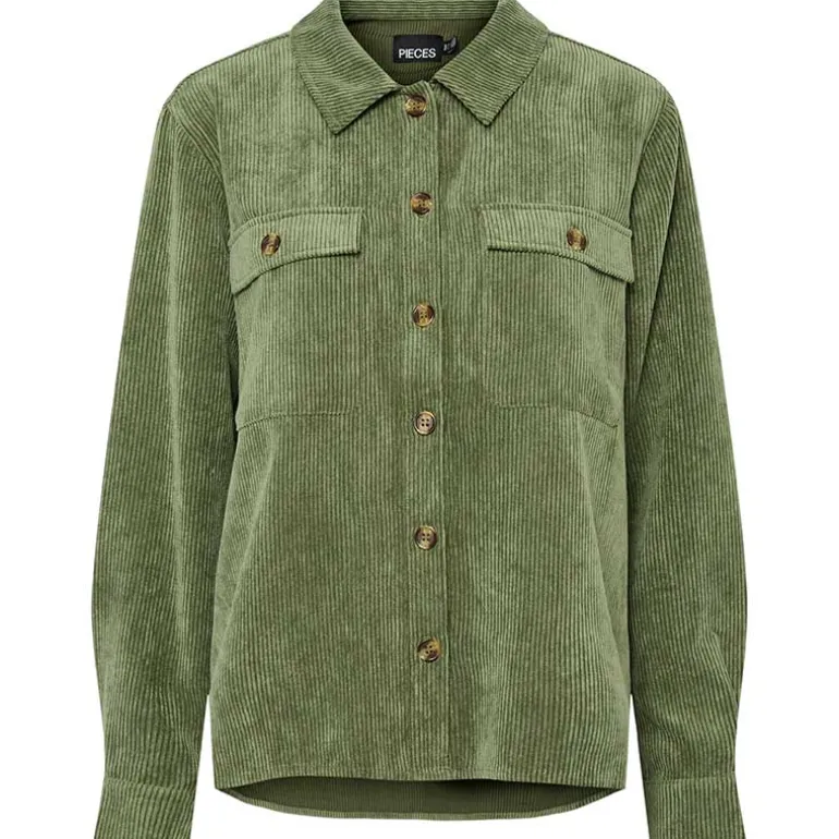 Fløjls skjorte fra Pieces i grøn.
