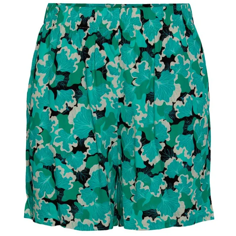 Pieces shorts i grøn med naturprint.