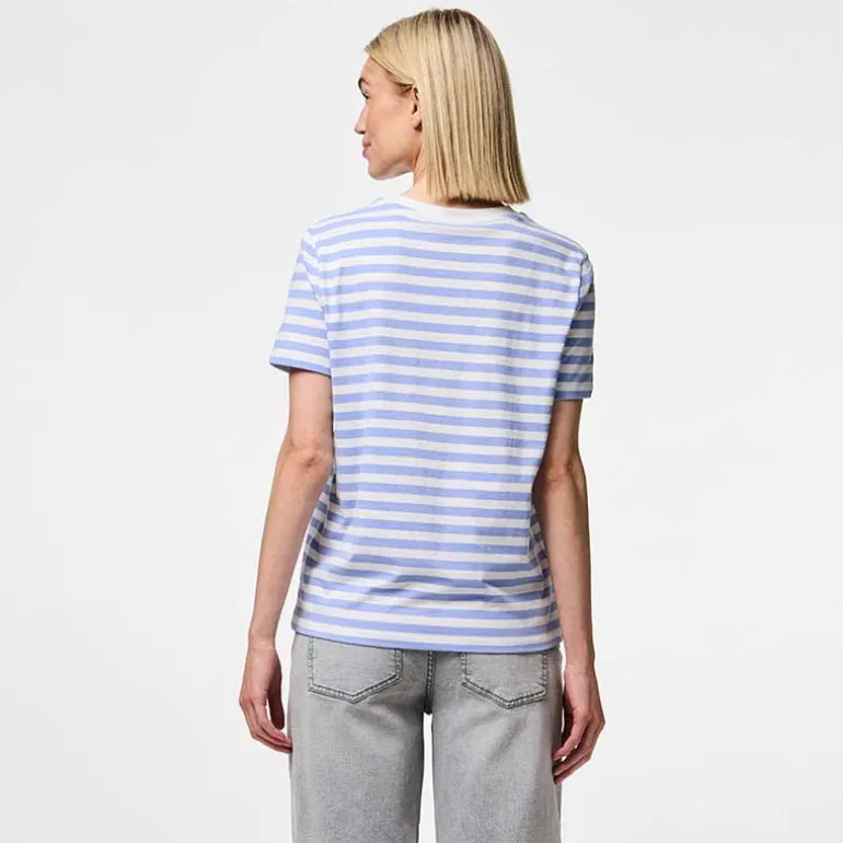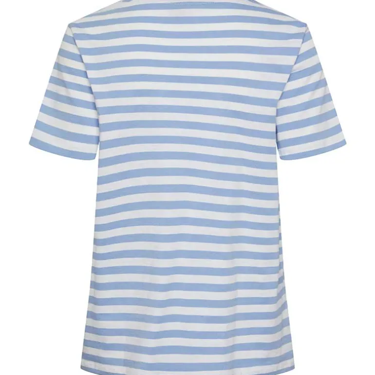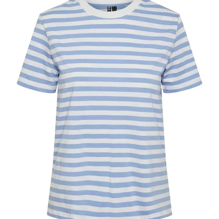 Stribet t-shirt fra Pieces i lyseblå & hvid.
